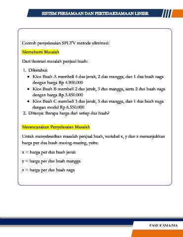 Untuk menyelesaikan masalah penjual buah, variabel x, y dan z menunjukkan