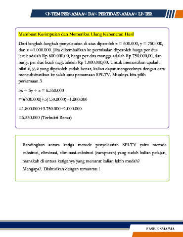 Dari langkah-langkah penyelesaian di atas diperoleh x = 600.000, y = 750.000,