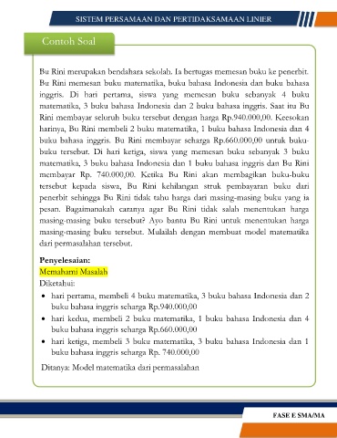 Bu Rini memesan buku matematika, buku bahasa Indonesia dan buku bahasa
