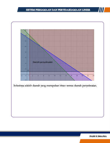 Solusinya adalah daerah yang merupakan irisan semua daerah penyelesaian.