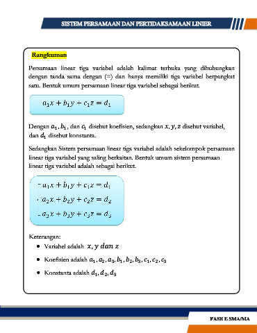 linear tiga variabel yang saling berkaitan. Bentuk umum sistem persamaan