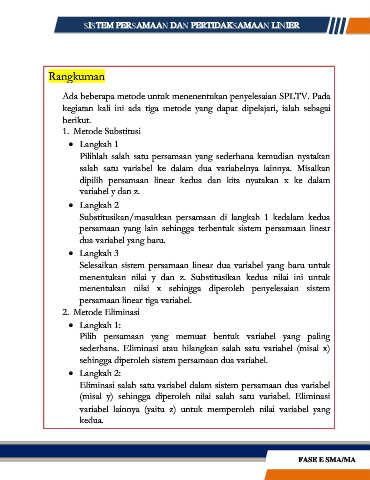 persamaan yang lain sehingga terbentuk sistem persamaan linear