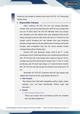 Standarisasi baja tulangan di Indonesia diatur dalam SNI 2052: 2017 tentang Baja