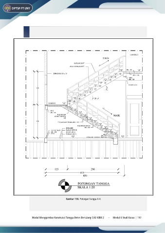 Gambar 158. Potongan Tangga A-A Modul Menggambar Konstruksi Tangga Beton Bertulang CAD KBM 2 – Modul 6 Studi Kasus | 197
