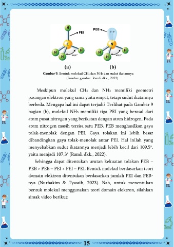 bagian (b), molekul NH3 memiliki tiga PEI yang berasal dari