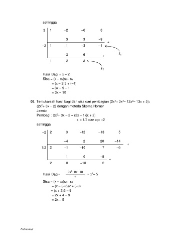 06. Tentukanlah hasil bagi dan sisa dari pembagian (2x + 3x – 12x – 13x + 5):