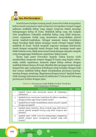 Tabel 9.6 Pertanyaan untuk Refleksi Terkait Tanah dan