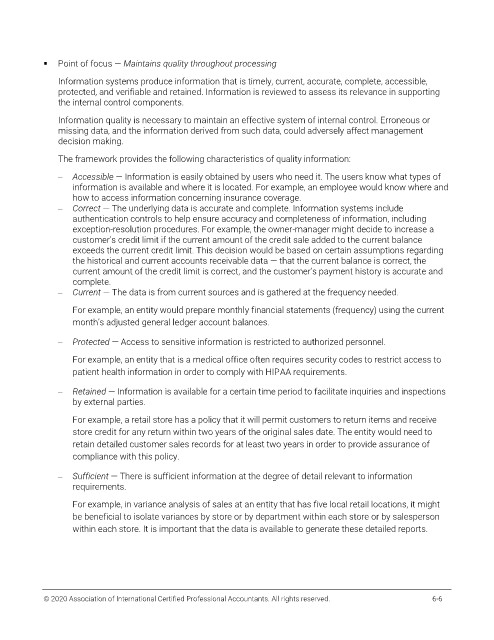 Information quality is necessary to maintain an effective system of internal control. Erroneous or