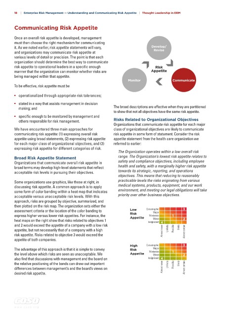 18 | Enterprise Risk Management — Understanding and Communicating Risk Appetite | Thought Leadership in ERM