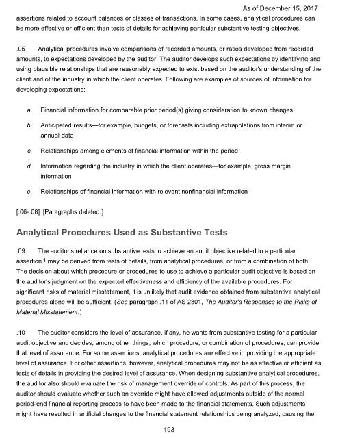 .05 Analytical procedures involve comparisons of recorded amounts, or ratios developed from recorded