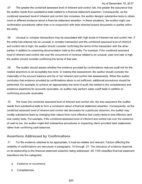 .07 The greater the combined assessed level of inherent and control risk, the greater the assurance that