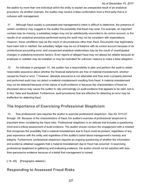 through .09. Because of the characteristics of fraud, the auditor's exercise of professional skepticism is