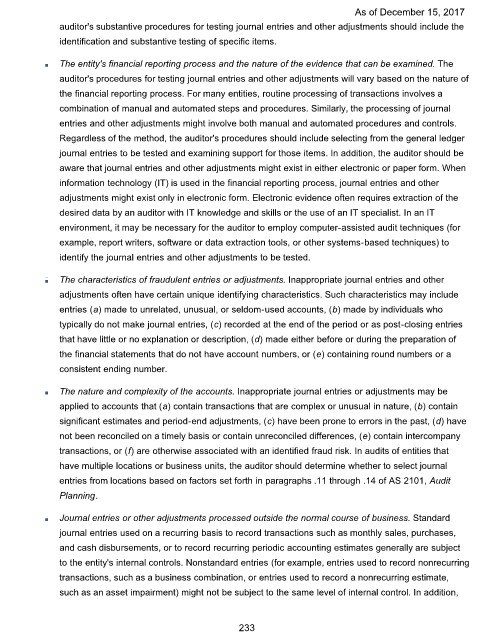 journal entries to be tested and examining support for those items. In addition, the auditor should be