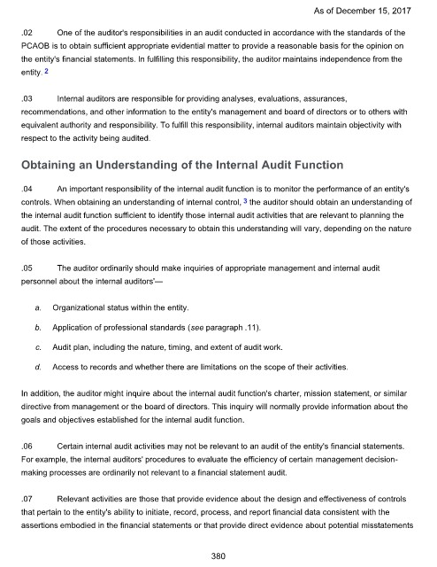 .05 The auditor ordinarily should make inquiries of appropriate management and internal audit