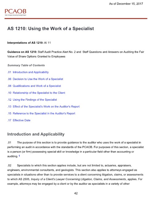performing an audit in accordance with the standards of the PCAOB. For purposes of this section, a specialist