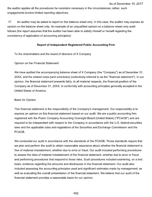 .17 An auditor may be asked to report on the balance sheet only. In this case, the auditor may express an
