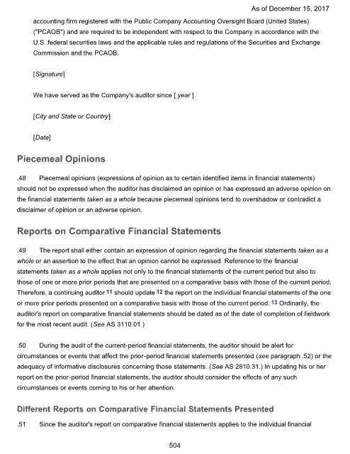 .48 Piecemeal opinions (expressions of opinion as to certain identified items in financial statements)