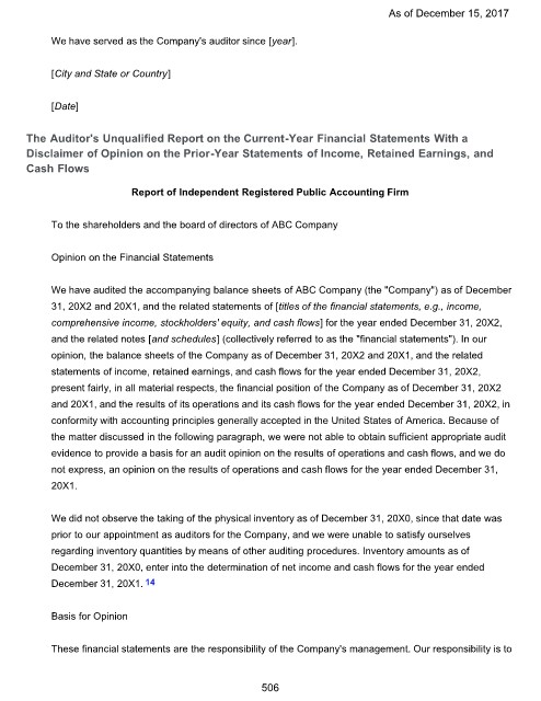 Disclaimer of Opinion on the Prior-Year Statements of Income, Retained Earnings, and