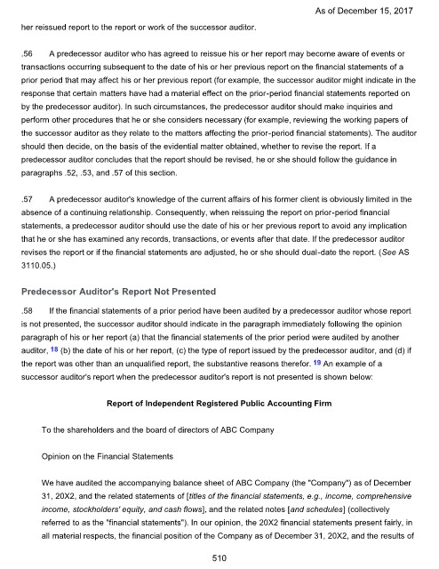 .58 If the financial statements of a prior period have been audited by a predecessor auditor whose report