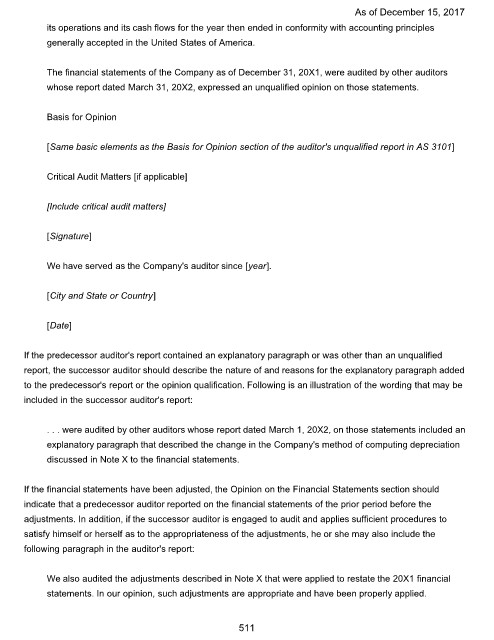 to the predecessor's report or the opinion qualification. Following is an illustration of the wording that may be