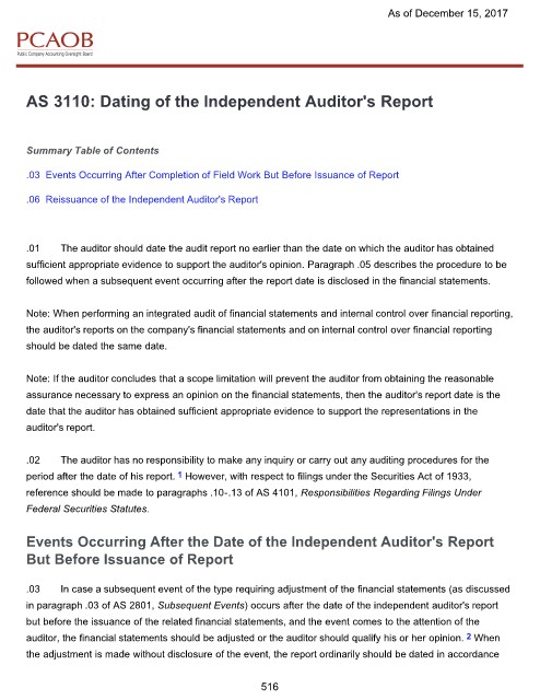 .03 Events Occurring After Completion of Field Work But Before Issuance of Report