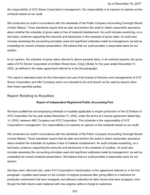 test basis, evidence supporting the amounts and disclosures in the schedule of royalties. An audit also