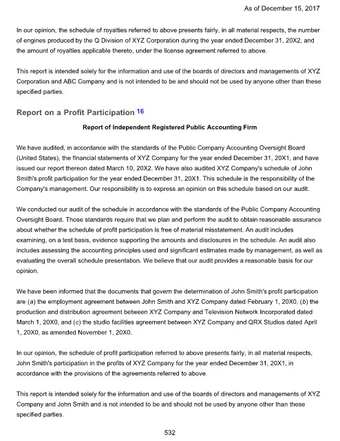 In our opinion, the schedule of royalties referred to above presents fairly, in all material respects, the number