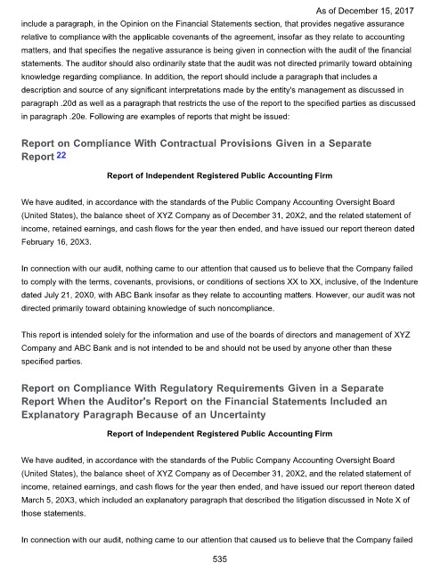paragraph .20d as well as a paragraph that restricts the use of the report to the specified parties as discussed