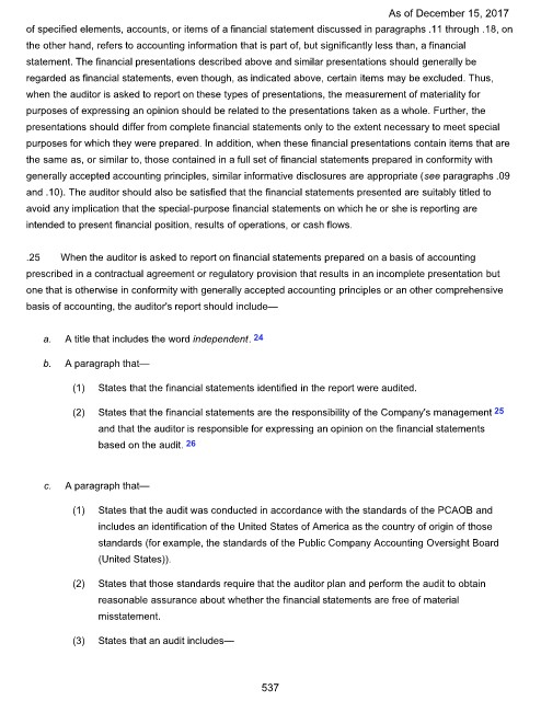 of specified elements, accounts, or items of a financial statement discussed in paragraphs .11 through .18, on