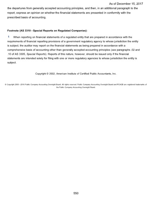 Footnote (AS 3310 - Special Reports on Regulated Companies):