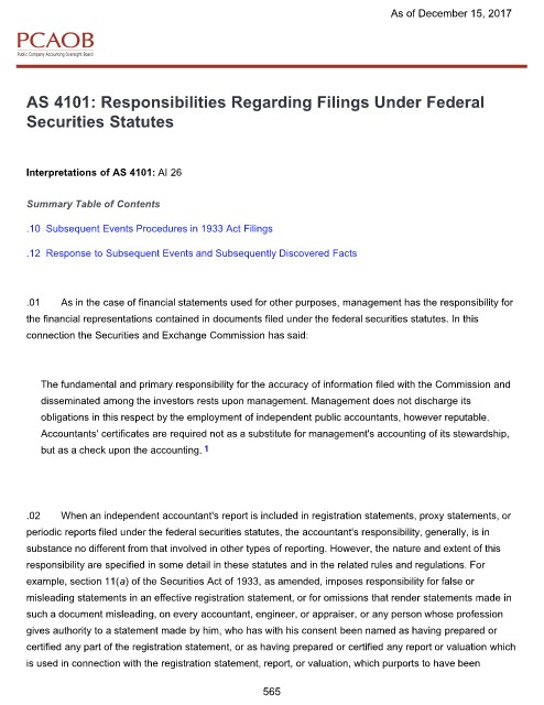AS 4101: Responsibilities Regarding Filings Under Federal