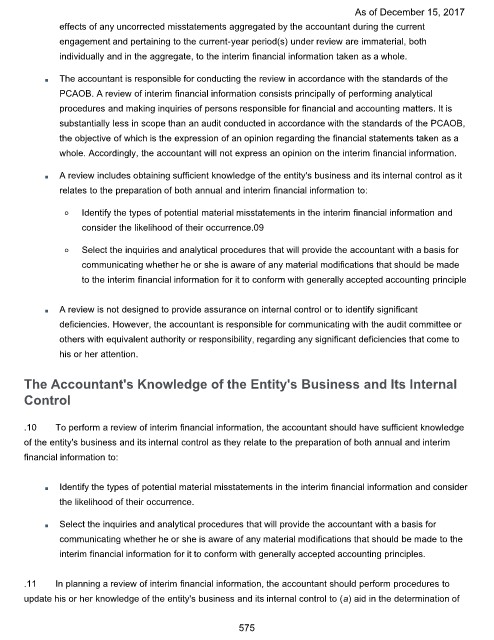 .10 To perform a review of interim financial information, the accountant should have sufficient knowledge