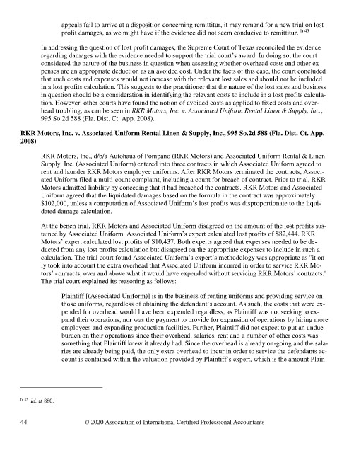 At the bench trial, RKR Motors and Associated Uniform disagreed on the amount of the lost profits sus-