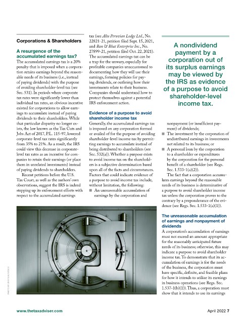 from 35% to 21%. As a result, the IRS ting earnings to accumulate instead of not related to its business; or
