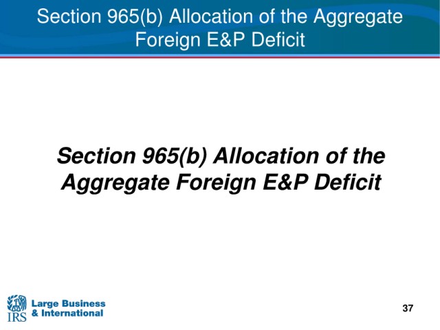 Section 965(b) Allocation of the Aggregate Foreign E&P Deficit Section 965(b) Allocation of the Aggregate Foreign E&P Deficit 37