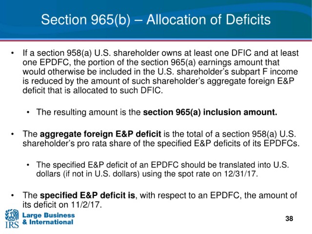 pro rata share of the specified E&P deficits of its EPDFCs.