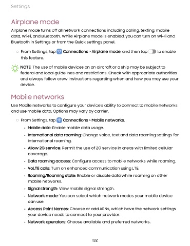 data, Wi-Fi, and Bluetooth. While Airplane mode is enabled, you can turn on Wi-Fi and