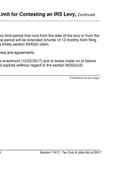 TCJA, Section 11071 – Extension of Time Limit for Contesting an IRS Levy, Continued