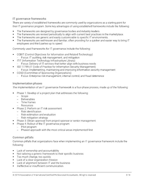 their IT governance program. Some key advantages of using established frameworks include the following: