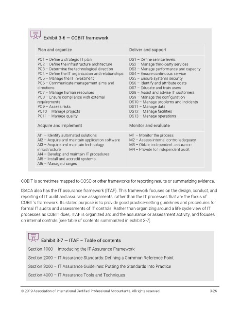 processes as COBIT does, ITAF is organized around the assurance or assessment activity, and focuses
