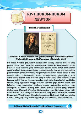 Gambar 4.1. Isaac Newton dan gambar sampul buku Philosophiae