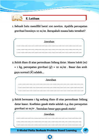 1. Sebuah batu memiliki berat 100 newton. Apabila percepatan
