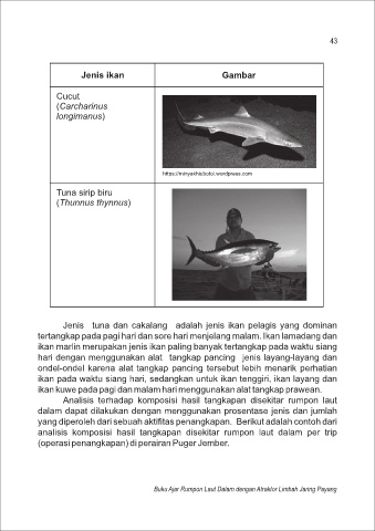 ikan pada waktu siang hari, sedangkan untuk ikan tenggiri, ikan layang dan