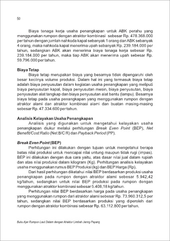 kg/tahun, sedangkan untuk nilai BEP produksi pada rumpon dengan