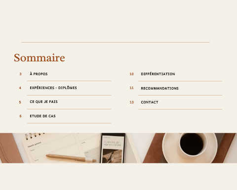 Sommaire 3 À PROPOS 10 DIFFÉRENTIATION 4 EXPÉRIENCES - DIPLÔMES 11 RECOMMANDATIONS 5 CE QUE JE FAIS 13 CONTACT 6 ETUDE DE CAS