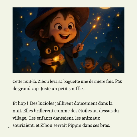 Cette nuit-là, Zibou leva sa baguette une dernière fois. Pas