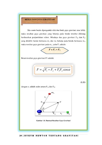 maka resultan gaya gravitasi pada m 1, yaitu F 1 adalah: