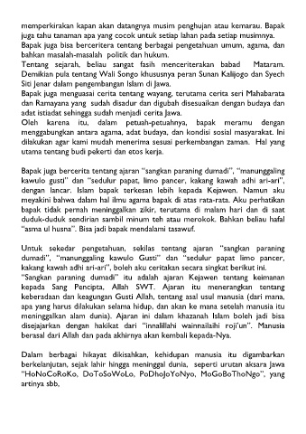dengan lancar. Islam bapak terkesan lebih kepada Kejawen. Namun aku