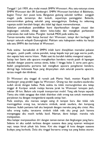 Tanggal 1 Juli 1959, aku mulai masuk SMPN Wonosari. Aku satu-satunya siswa