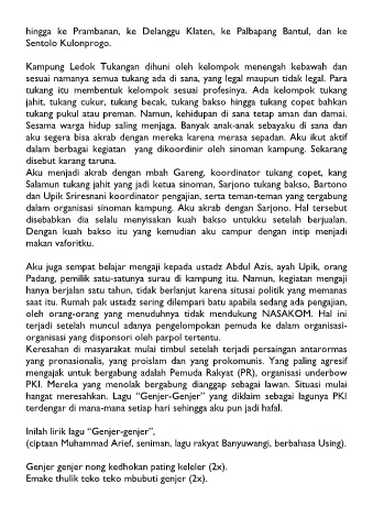 dalam organisasi sinoman kampung. Aku akrab dengan Sarjono. Hal tersebut